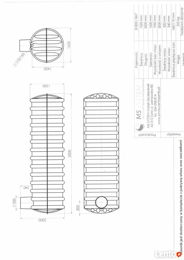 Dostępne także zbiorniki: 3m³, 4m³, 5m³, 8m³, 10m³